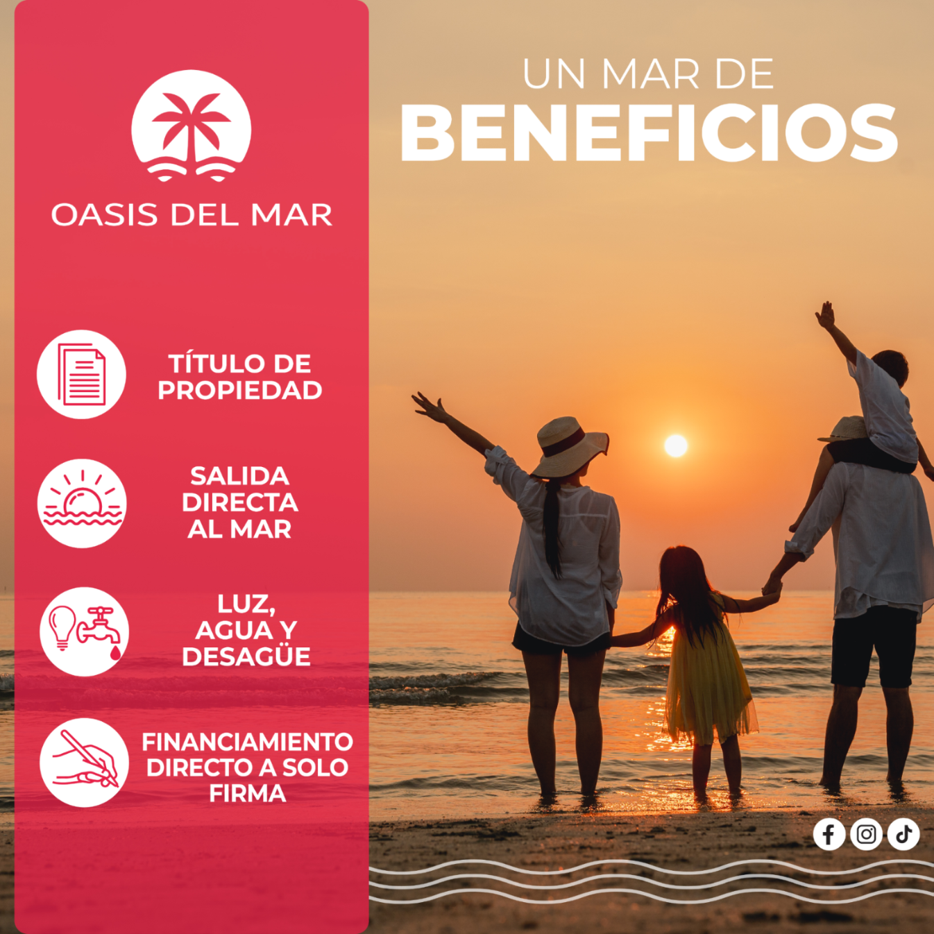 En OASIS DEL MAR creamos espacios únicos frente al mar, donde la inversión se convierte en calidad de vida. Ofrecemos lotes de playa exclusivos en el sur de Lima, con proyectos seguros y un entorno pensado para disfrutar la tranquilidad, la unión familiar y el crecimiento de tu patrimonio.